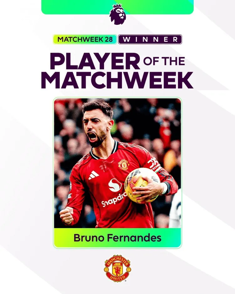 开云体育网址-官方:B费当选英超第28轮最佳球员,本赛季已经第四次获奖
